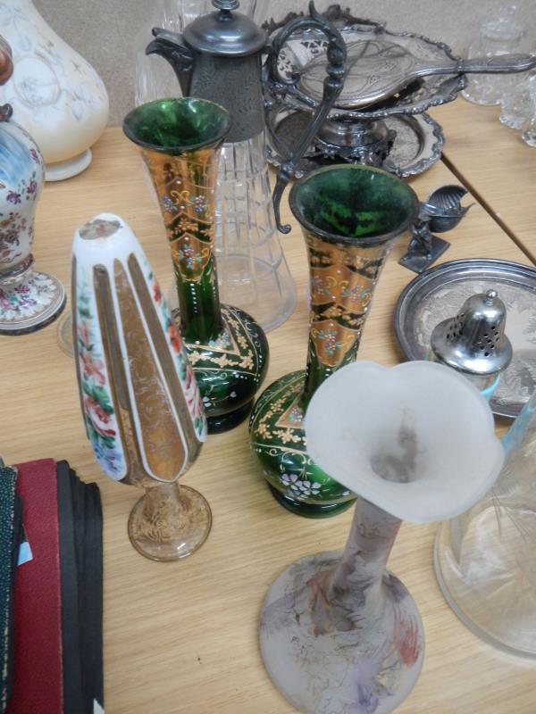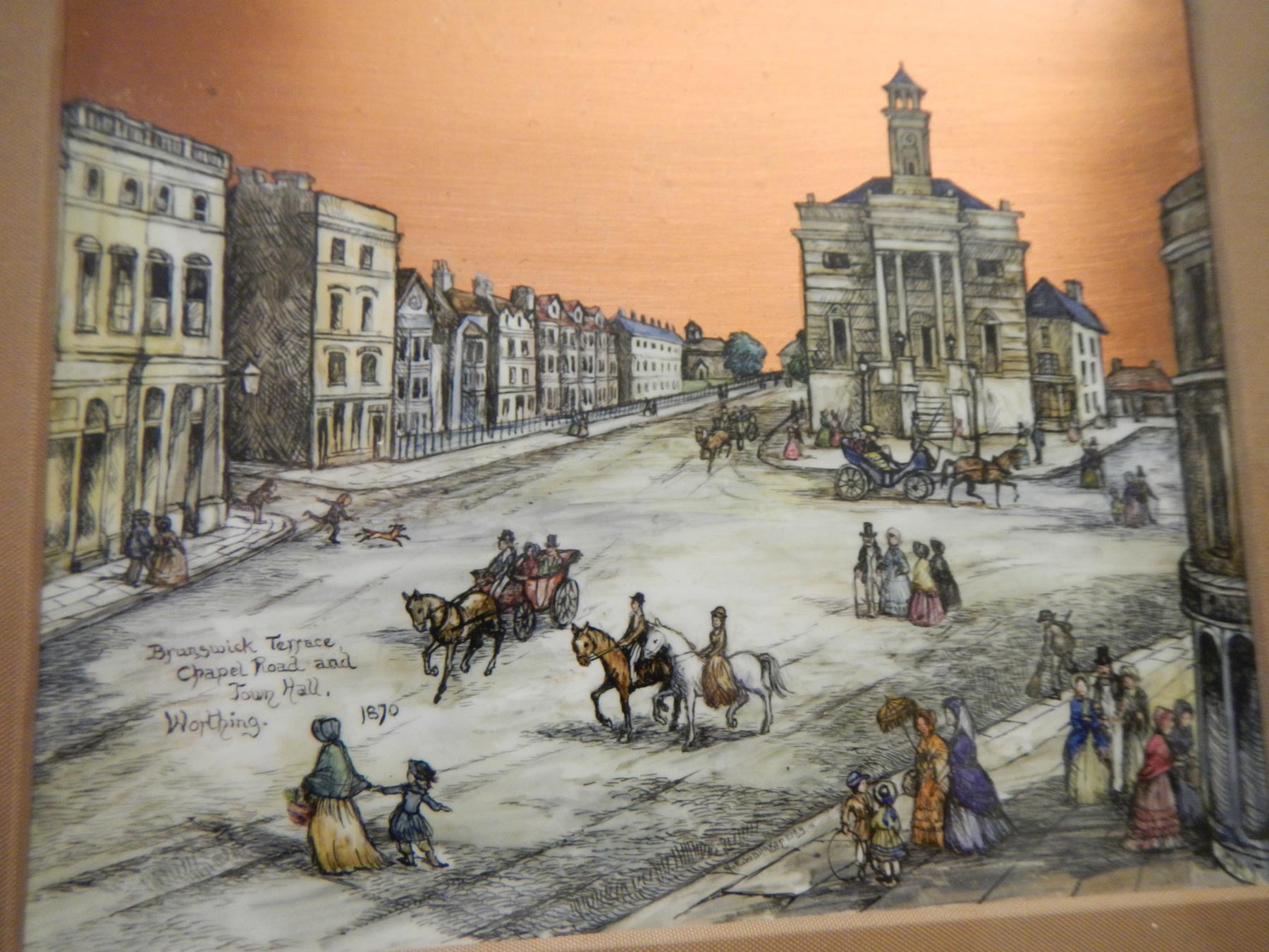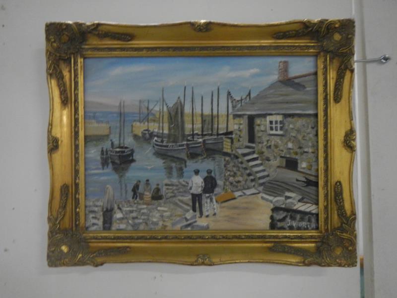 Lots include: An oak cased 8 day long case clock with brass dial and moon phase, marked Nicklin, Birmingham; A pair of enamel on copper paintings, Brunswick Terrace, Chapel Road, Worthing, 1870 and Town and Harbour Littlehampton 1860 both signed R. E.Whittaker R.M.S.; A walnut writing slope with work box; An early Islamic two handled vase; Several fine brass carriage clocks; A Victorian phonograph with horn; A phonograph with horn and cylinders, a/f; A pair of oils on board by Edward Hersey (B1945) ‘The Shady Spot’ and ‘Stopping to Gossip’; A 19th century 8 day long case clock by William Foster, Lincoln with painted dial and oak and mahogany case; A large oak mule chest; An oil on board, Bay View, Mousehole by Jack Worth 1982; An oil on board, Bay View, Mousehole by Jack Worth 1982; Gold; Silver; Jewellery; Books; Comics; A collection of Hummel figurines; Lorna Bailey Art Pottery etc.