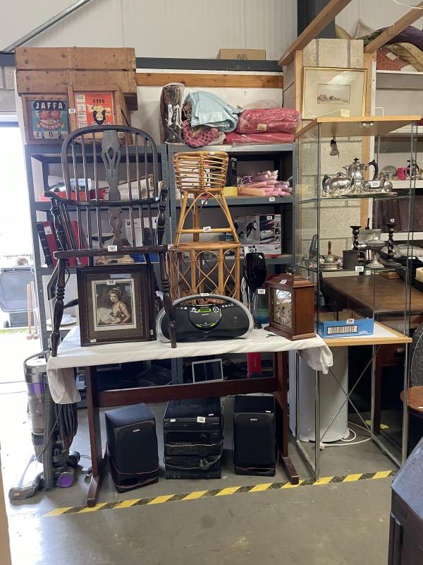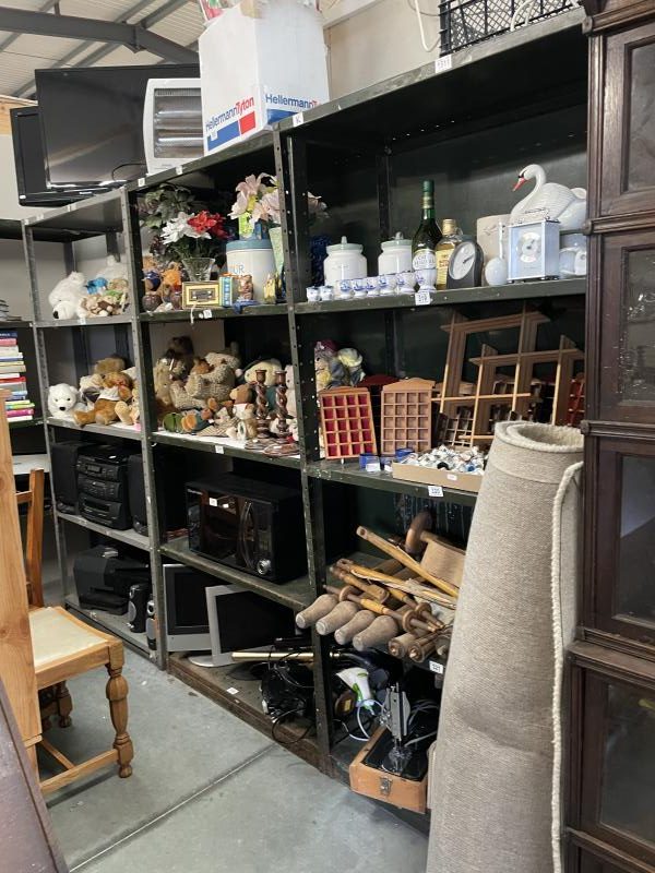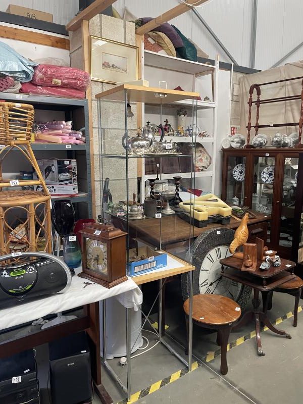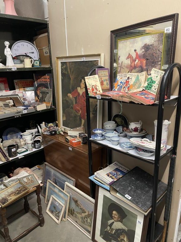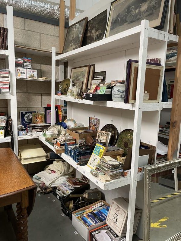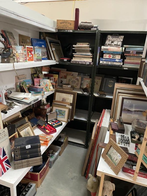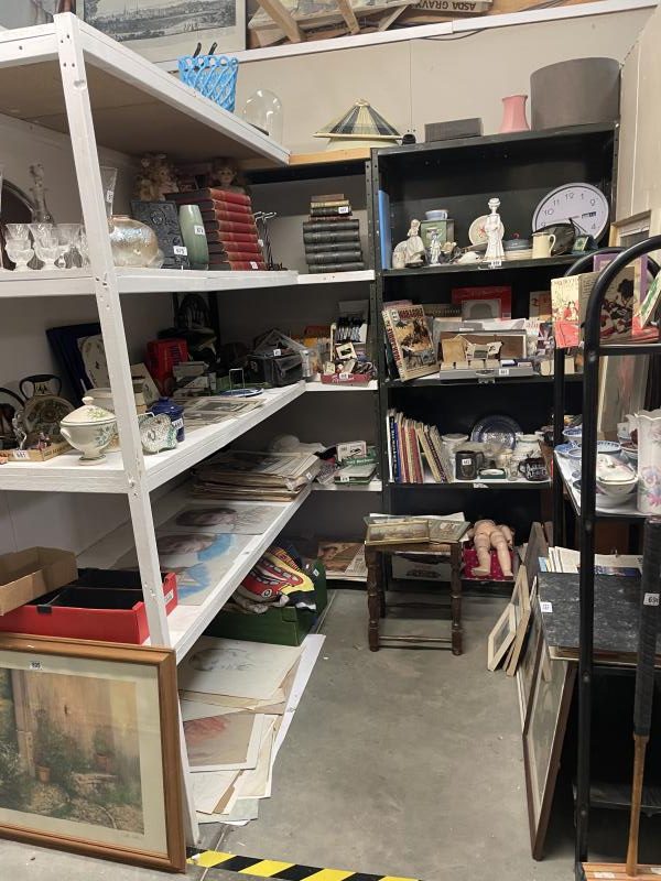 In Excess of 1,200 lots over two daysincluding 100 lots of silver jewellery, 100 lots of garden items and tools etc., in excess of 300 lots of collectable ceramics, brass, copper, stamps, ephemera (including Russian), In excess of 50 lots of paintings and prints, costume jewellery and furniture to include Globe Wernicke style bookcase, slope front writing desk, inlaid circular table, watches, clocks, postcards, old films, cameras etc.