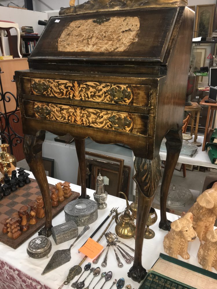 Nearly 600 lots of Antiques, Collectables and General items. From several deceased estates, downsizing estates and many private vendors. Items include: Antiques, Collectables, Pottery, Porcelain, Many Victorian and Other Tea Sets, Sylvac, Noritake, Glassware, Tools, collections of Lilliput Lane, Garden Items, Books, Records, Collections of Postcards, Costume Jewellery, Beds and Bedroom Furniture, Brassware and Metalware, Blue and White pottery, Furniture including a painted pine dresser base, an Edwardian inlaid bureau, glazed cabinets, many clocks and clock garnitures etc.