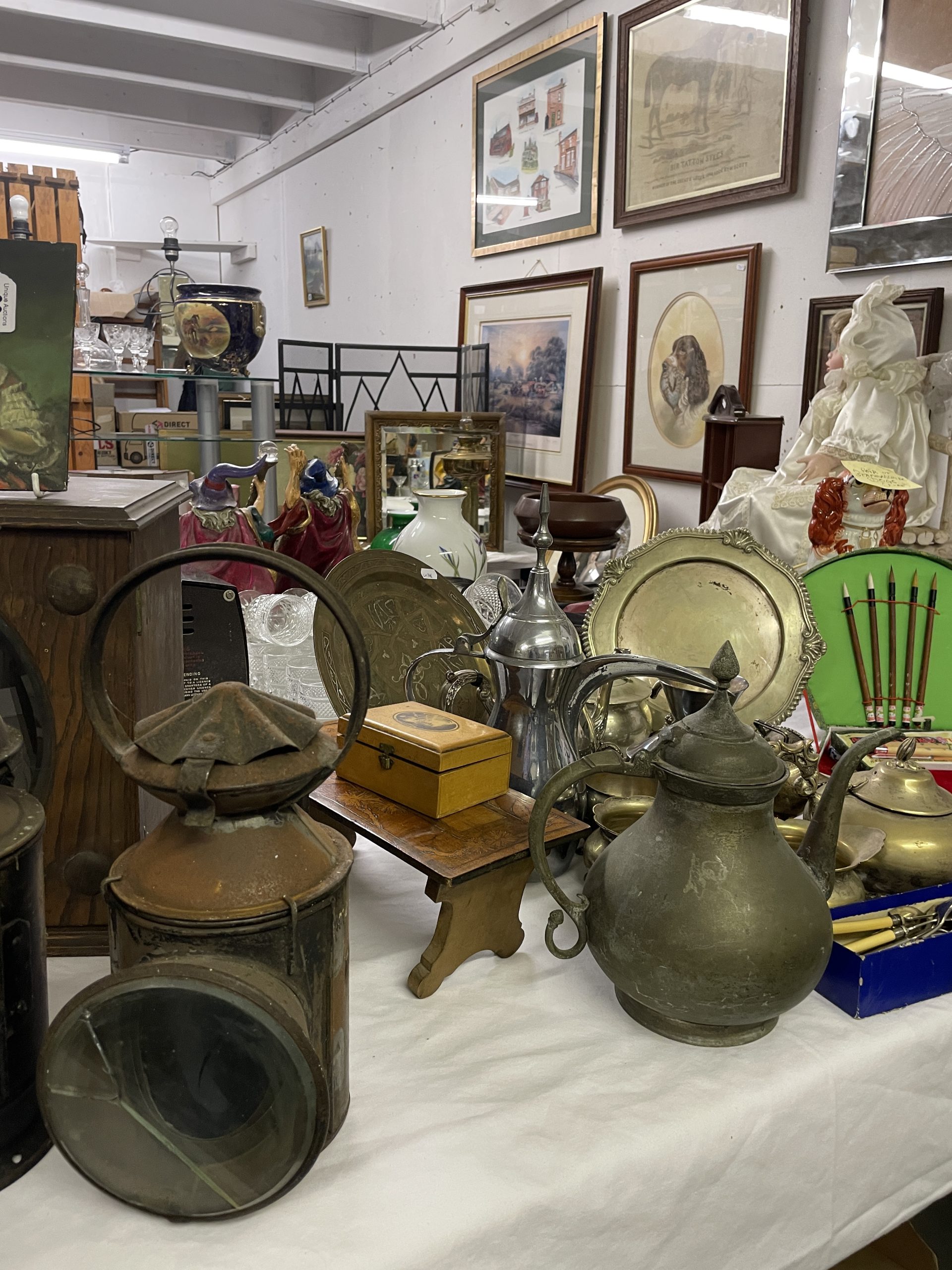Exceptional Antiques, Collectables, Fine China, Gold & Silver Jewellery, Unique Gifts – over 100 lots of Silver including watches, bracelets, chains, necklaces and many other items; many lots of Costume Jewellery; many lots of Pottery and China including Royal Doulton, Coalport and wade; many lots of good Crystal, Cut Glass and Glass including decanter; many lots of old Die-Cast including 2 early locomotives; many items of Brassware including Fire irons and Fire dogs, Fenders etc; Old Copperware including Victorian Kettles and Scuttles etc; many mid 20th century tea sets; Toys, Dolls and Teddy Bears; many Wristwatches; Cutlery including Box sets; many early clocks including French mantel clocks; many items of Furniture; and more!