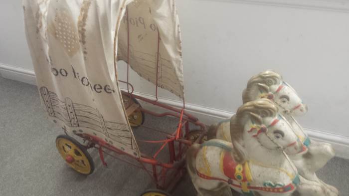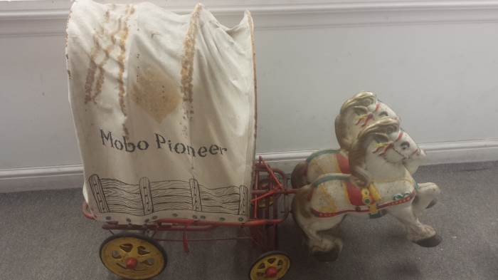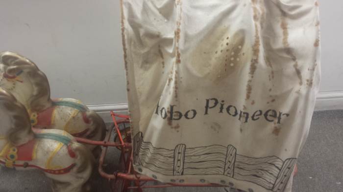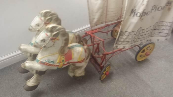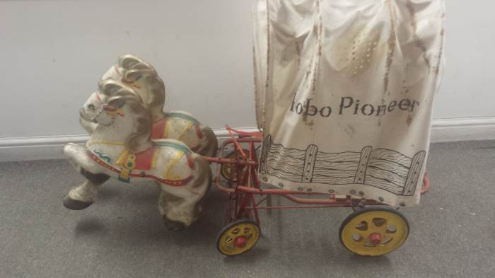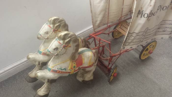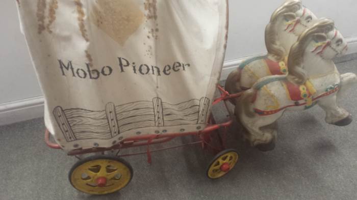 A Mobo Pioneer Wagon reputedly given by Roy Rogers as a present will be of interest to collectors at Unique Auctions May 28th and 29th Antiques & Collectors auction. The Mobo Pioneer Wagon is one of the many lots of the Vintage Tin Plate and Toys collection which forms part of the auction.