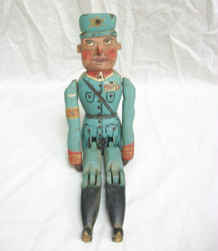 A Rare & Unusual German Jig Doll Puppet is dancing his way into Unique Auctions 26th May Fine Antiques & Collectors auction. The puppet is fully jointed and wears a military uniform. The doll’s uniform features a swastika on his right arm.