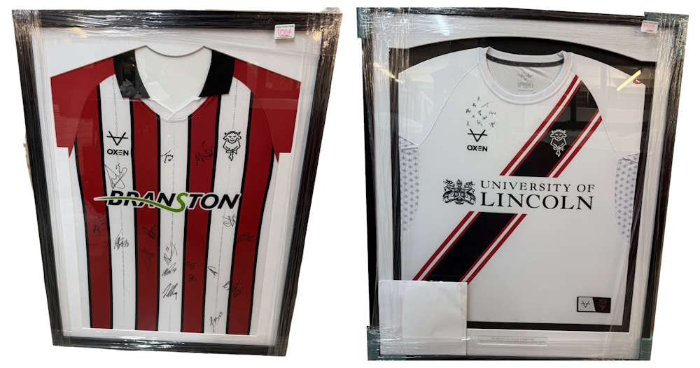 The charity lots consist of two framed and glazed Lincoln City Football Club shirts, both signed and generously donated to help raise funds for the Mayor’s chosen charity: