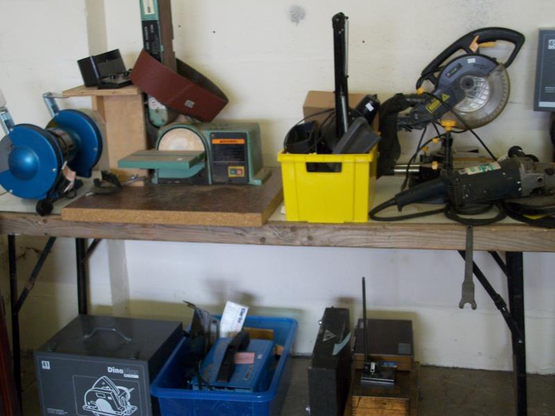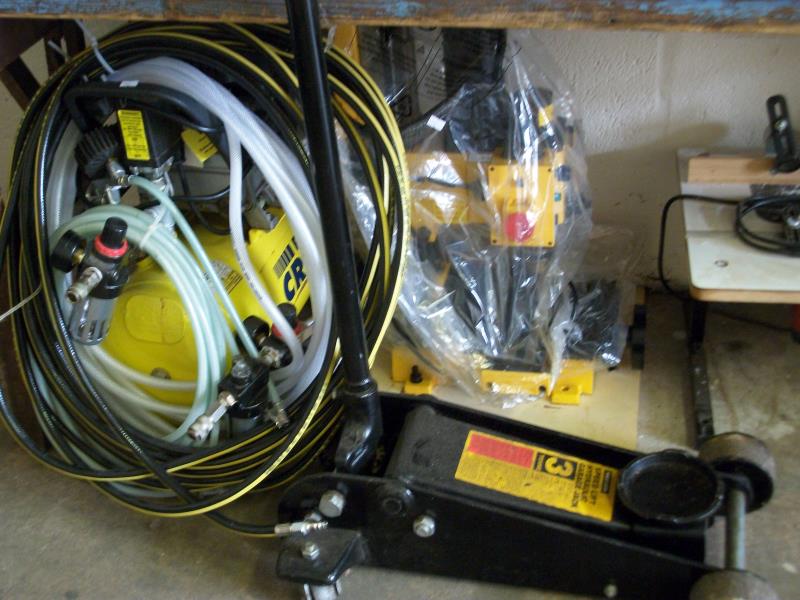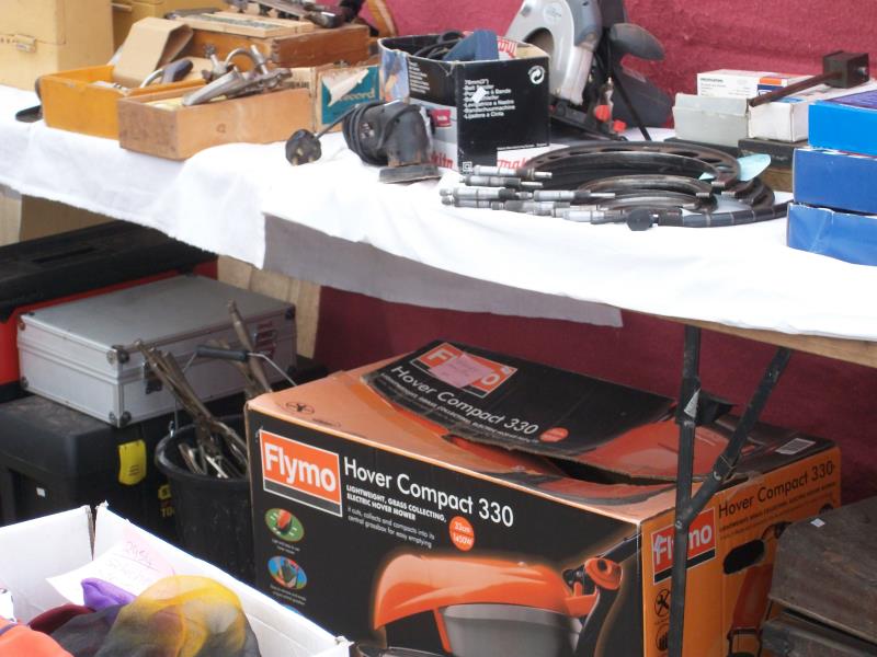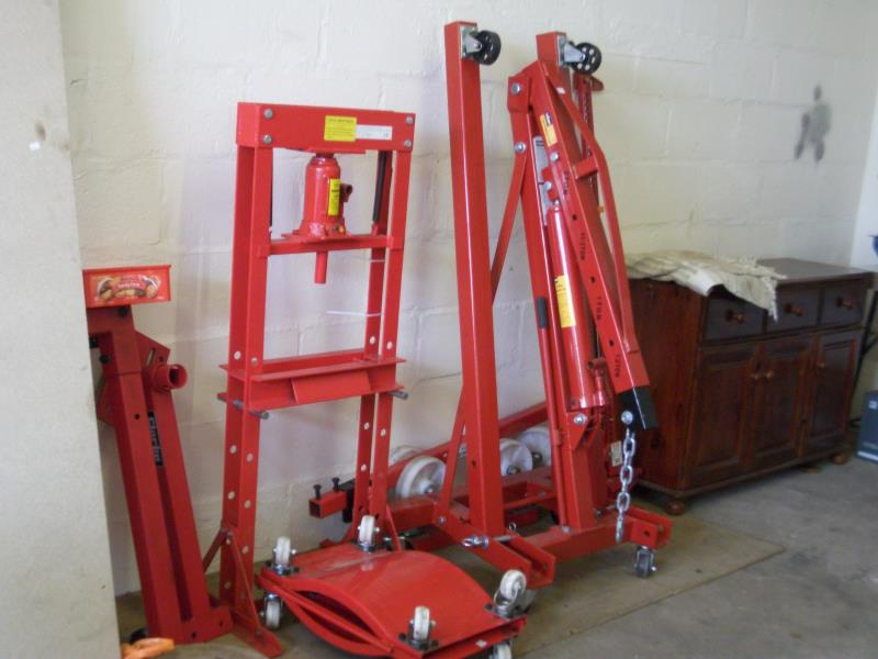 Listed are a few of the items for sale (the prices shown are the current prices at Machine Mart) : Engine Stand (£83.98), Folding Workshop Crane (£179.98), CL 300M Metal Lathe (£538.80), 4 Jaw Chuck (£83.98), Wheel Doll Pair (£56.39), 12 Ton Hydraulic Press (£299.98), Parts Washer (£119.98), Power Tex Cart Trolley (£1036.76), Welding Automatic Headshield (£59.98).