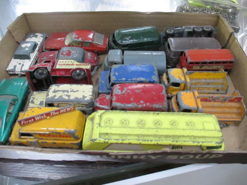 300 lots: Lots include: Antiques; Collectables; white goods; silver plate; figurines; pottery and porcelain; copper; many tea sets; Victoriana; stamps; postcards; lights and lamps; furniture; mirrors; textiles; LP records; die-cast; books; dolls; vintage tins; toys; Bang & Olufsen turntable and speakers; Chinese bottle flasks; canteen of cutlery; tins; Corgi Magic Roundabout etc.